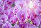 Close up of beautiful orchid flower in tropical garden, spring time season.