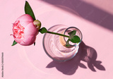 Peony flower in a vase on the pink background close up on the noon sun with shadows