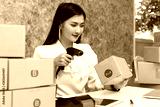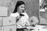 Young teenage prepare to send goods to customer after checking order, work at home.