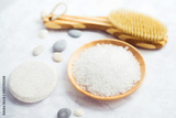 bathroom accessories - massage brush, bath salt and sponge for washing