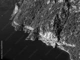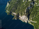 Aerial photo of a long winding road on Piva Lake in Montenegro