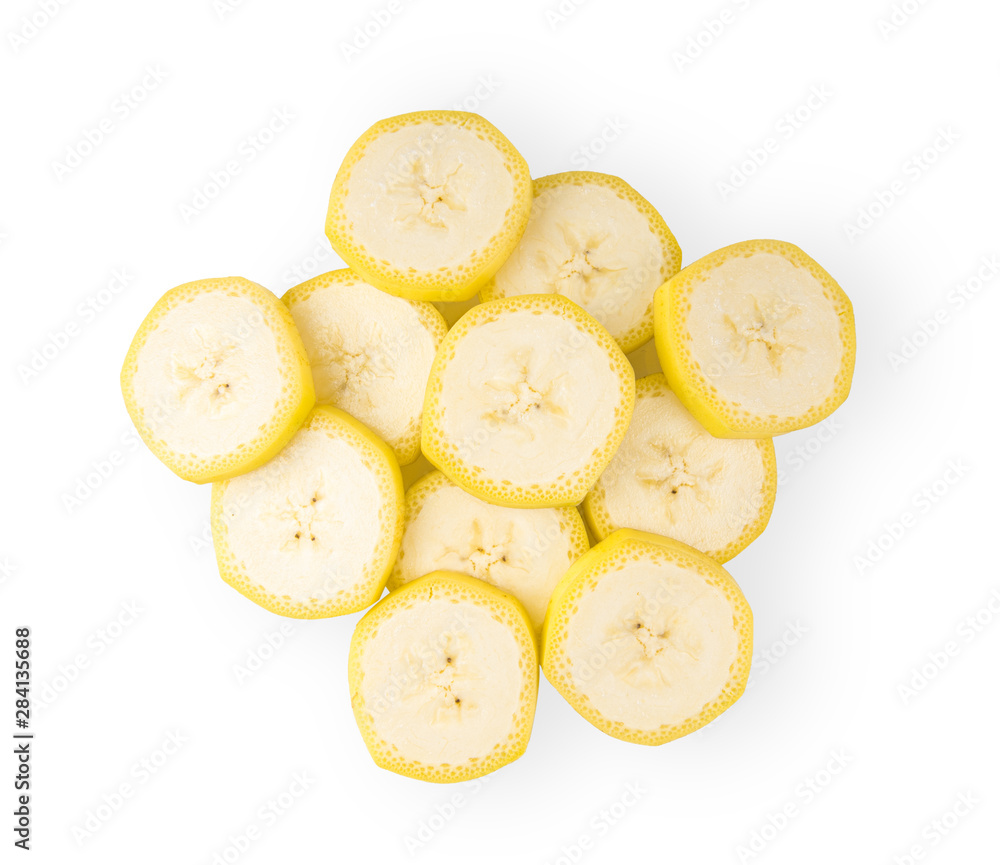banana slice isolated on white background. top view