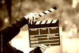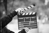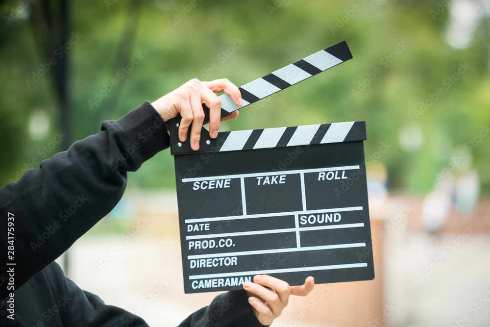 clapperboard in hands on outdoor