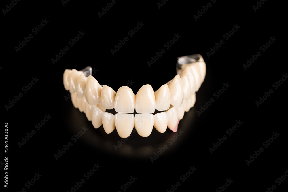 denture isolated on black background