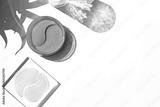 Under eye dark circles hydrogel patches with aloe vera on the sunny white background. Copy space