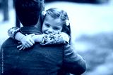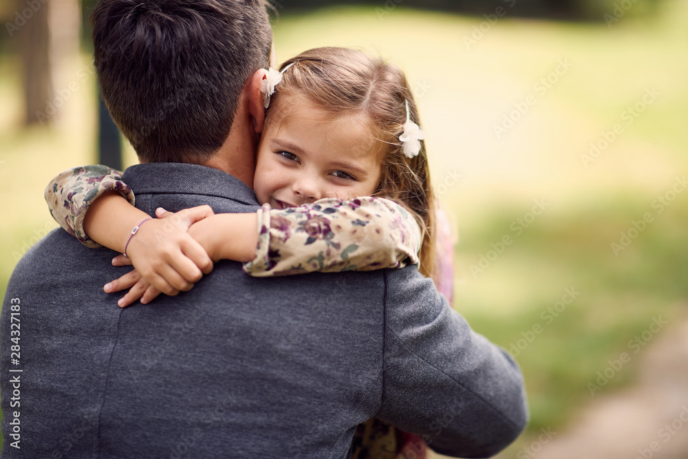 schoolgirl hugging father after school