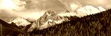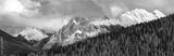 Canada, Alberta, Peter Lougheed PP. Jagged peaksare bound by a fir forest in Peter Lougheed PP, in Kananaskis Country, Alberta, Canada.