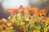 Marigold - beautiful orange flowers, in the garden, close up view, bright sunny day, blurred background