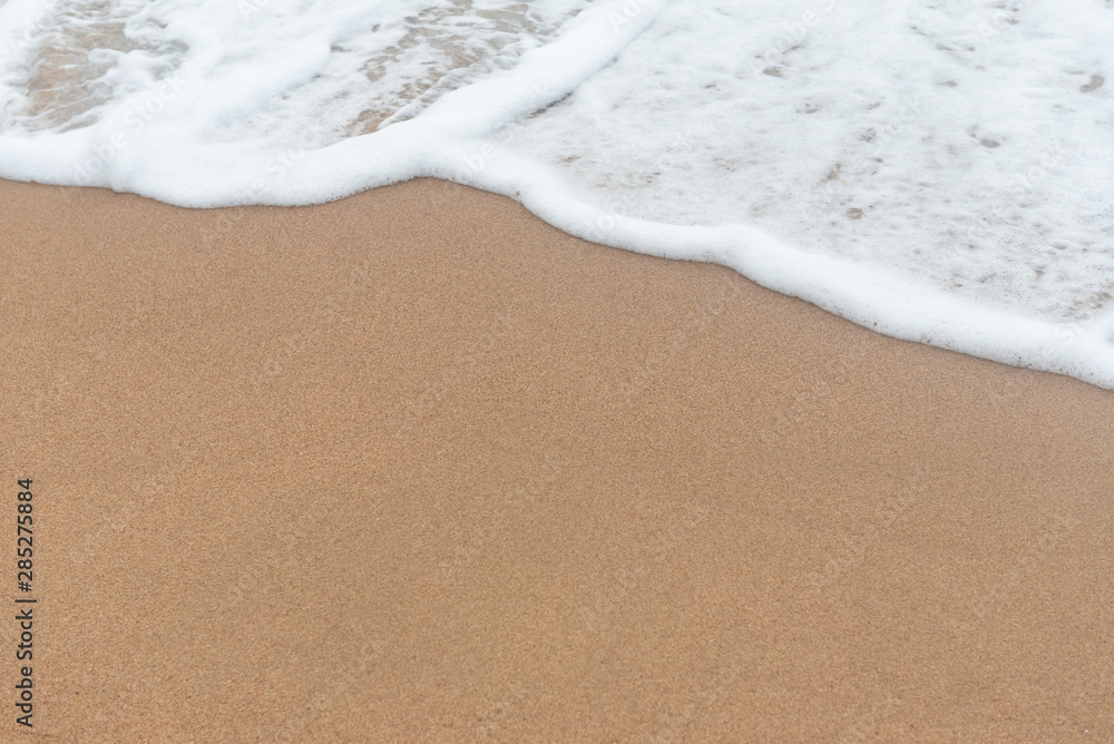 Sand beach with surfing wave of water for banner background.