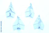 Persistence and motivation. Four yellow creased paper planes isolated on white background. Copy space.