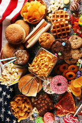 Unhealthy products. food bad for figure, skin, heart and teeth.