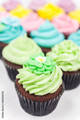 Chocolate Cup Cakes With Colorful Icing or Frosting