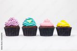 Four Chocolate Cup Cakes With Colorful Icing