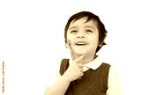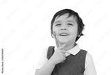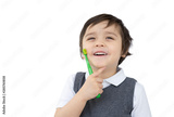 Toddler boy holding toothbrush isolated on white background, Kid boy in school uniform learning how to brush his teeth at school,Child development or Dental hygiene concept