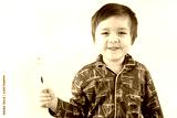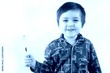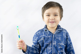Portrait of little boy wearing pajamas holding a tooth brush over white background, Studio portrait of a beautiful child mixed race boy with a toothbrush isolated, Health care concept
