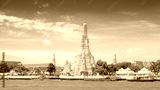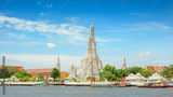 Wat arun, Boat traffic in the Chao Phraya River and in the city center, Bangkok city view of chao phraya river major river in Thailand.