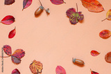Colorful Autumn leaves concept frame on the beige background. Copy space