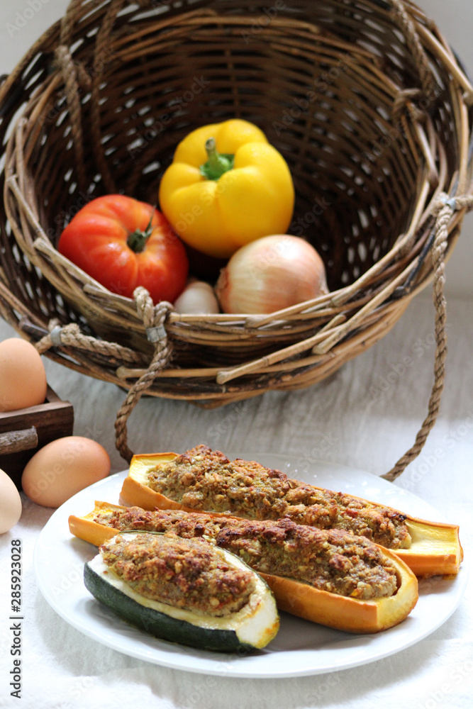 Courgettes farcies faites maison sur fond blanc