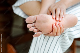 Woman massaging her painful barefoot, healthcare and medical concept