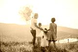 Happy family in nature. Happy family: mother, father, children son and daughter. life is made of little things.