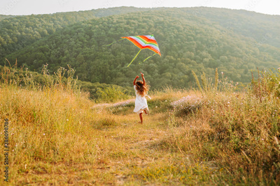 Happiness is made up of small things. little girl running in the meadow and having fun