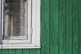 Part of white window and green wooden wall. Part of typical house in Lithuania, Trakai