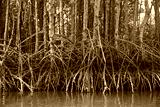 The picture highlights the roots of mangrove trees. In the fertile mangrove forest.