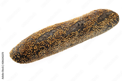 Homemade sourdough black bread baguette isolated on white background. Food.