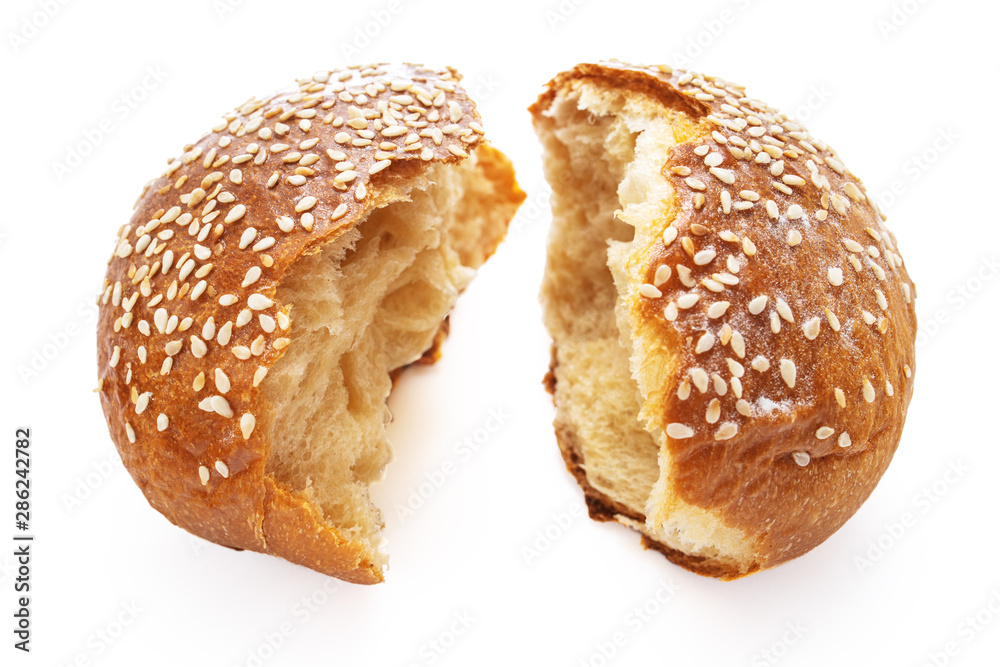 Homemade sourdough bread. Burger bun isolated on white background