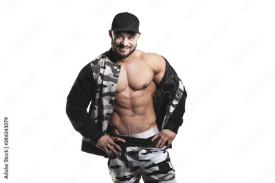 Man bodybuilder showing muscular body. Fitness and bodybuilding concept.