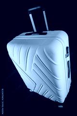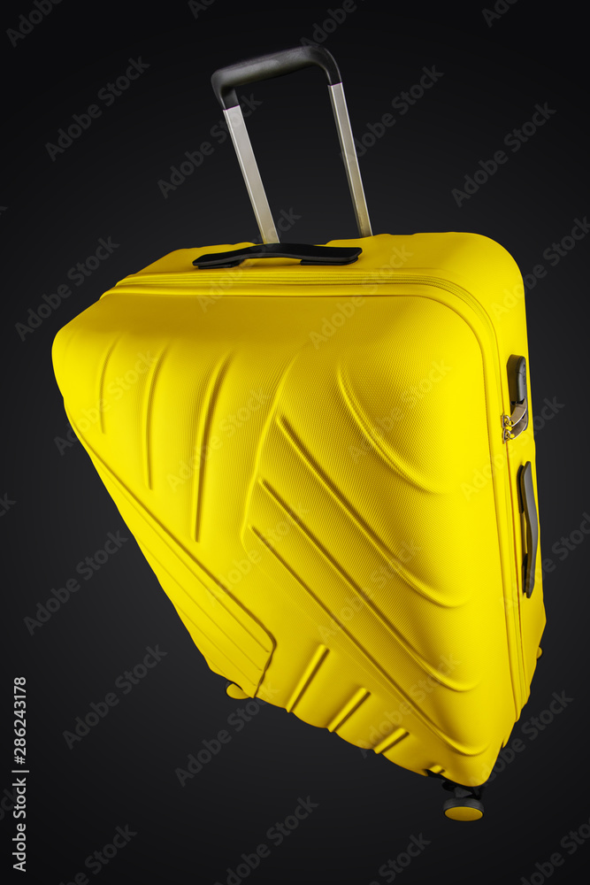 Suitcase yellow isolated on black background, clipping path.