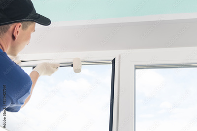 master clogs with a rubber mallet a fastener for a double-glazed window in a plastic window