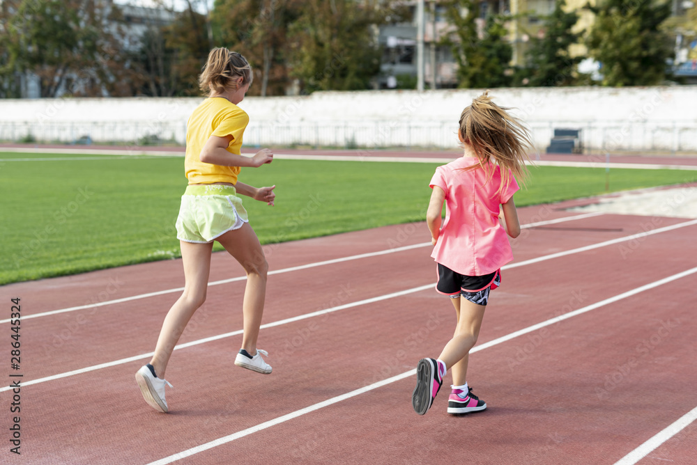 Back view of girls running