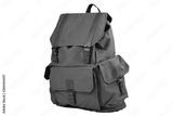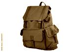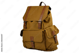 Canvas Backpack accessories isolated hipster background white. brown with yellow caramel canvas bag. Hand made backpack for travelers. Side view