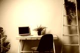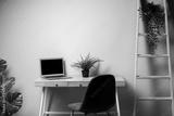 Simple desk with chair and grey laptop