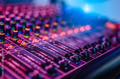 Professional audio mixing console in concert.