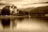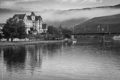 Scenic morning mist in Germany along the Rhine River.