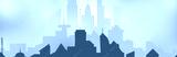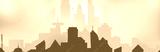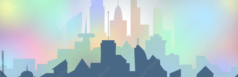illustration of silhouette of a colorful disco city, urban landscape in flat style