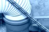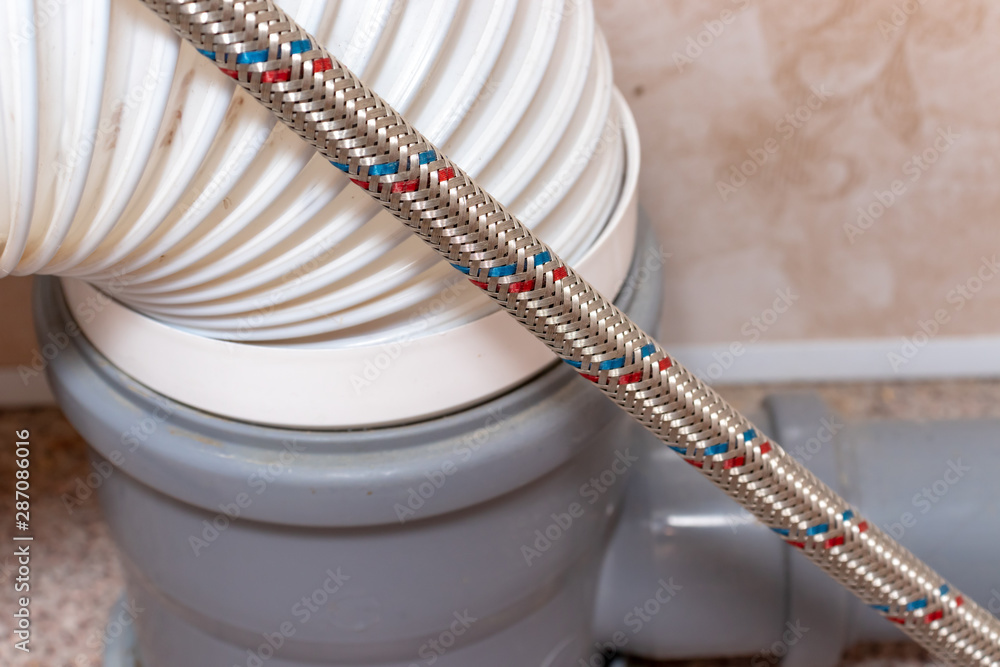 Plastic corrugated pan pipe for the toilet drain, plumbing work and installing the toilet