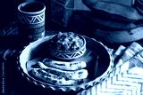 chili plantains with spicy tomato sauce. Healthy food concept. Traditional African and Nigerian cuisine. Selective focus. fried bananas plantains. african food. African cuisine called Boli and sauce.