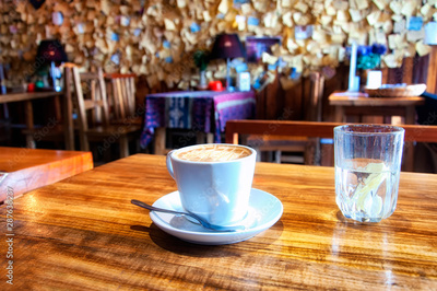 Cappuccino and water glass china coffee shop