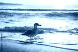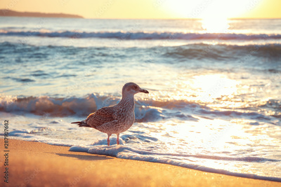 Seagull on the beach sand against the sea