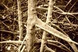 Close-up the roots of mangrove trees. In the fertile mangrove forest.