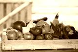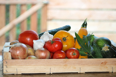 Plateau de légumes bio, cagette bois, agriculture biologique