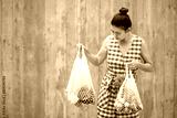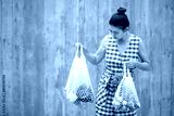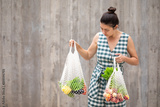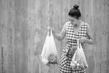 Young woman with white cotton Eco bag in hands. Lifestyle, zero waste concept