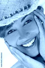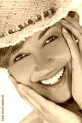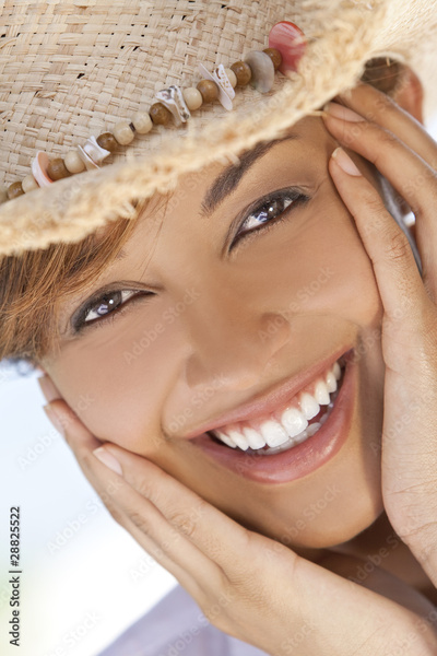 Beautiful Mixed Race Woman Laughing In Straw Coboy Hat