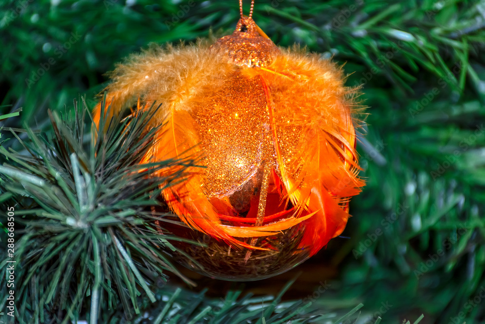 Christmas toys on the Christmas tree. Festive mood.