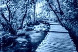 Beautiful morning view of Plitvice National Park. Sunny spring scene of green forest with pure water lake. Marvelous countryside landscape of Croatia, Europe. Traveling concept background.