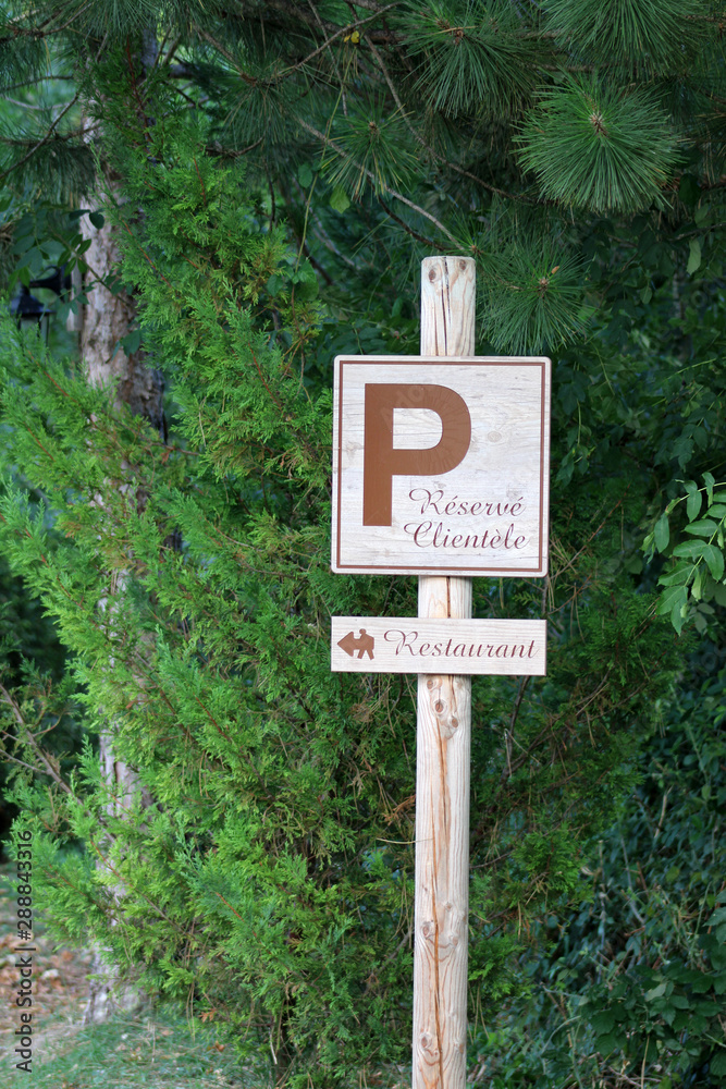 Panneau en bois Parking et panneau en bois restaurant, nature.