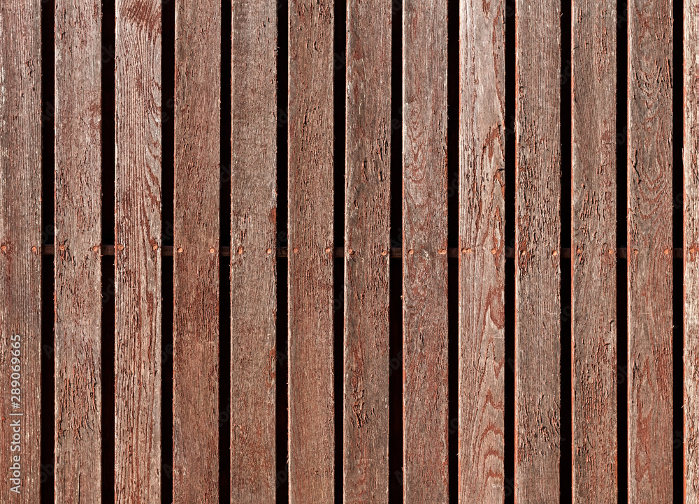 Old rustic wooden abandoned fence. Textured boards with peeling paint. Trendy modern background.